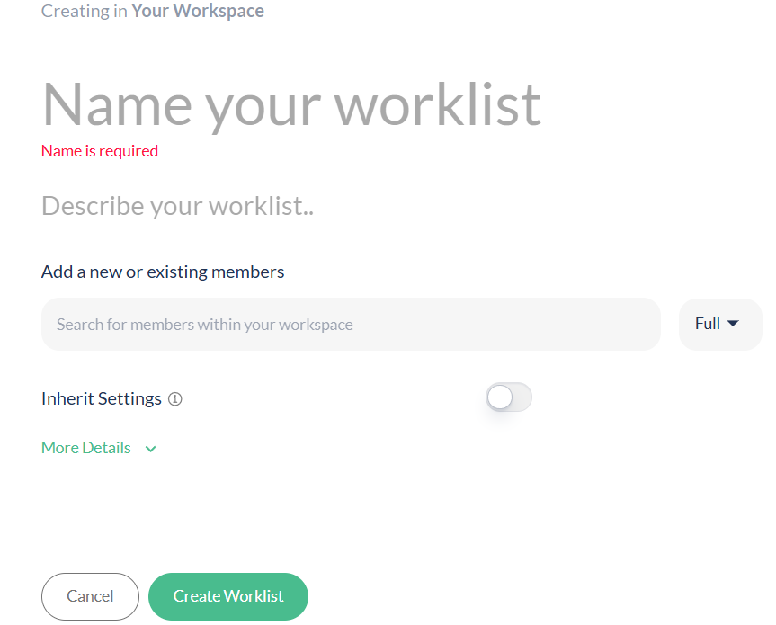 - Inherit members from the location where you create the Worklist.