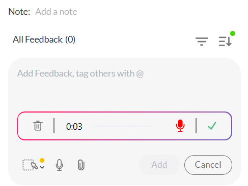 4. Click on the voice note option in the feedback dashboard and start recording your feedback.