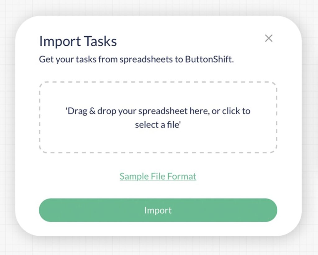 - Upload Your File: A pop-up window will appear. Drag and drop your list of tasks, stored in either CSV or XLSX format, directly into this pop-up.